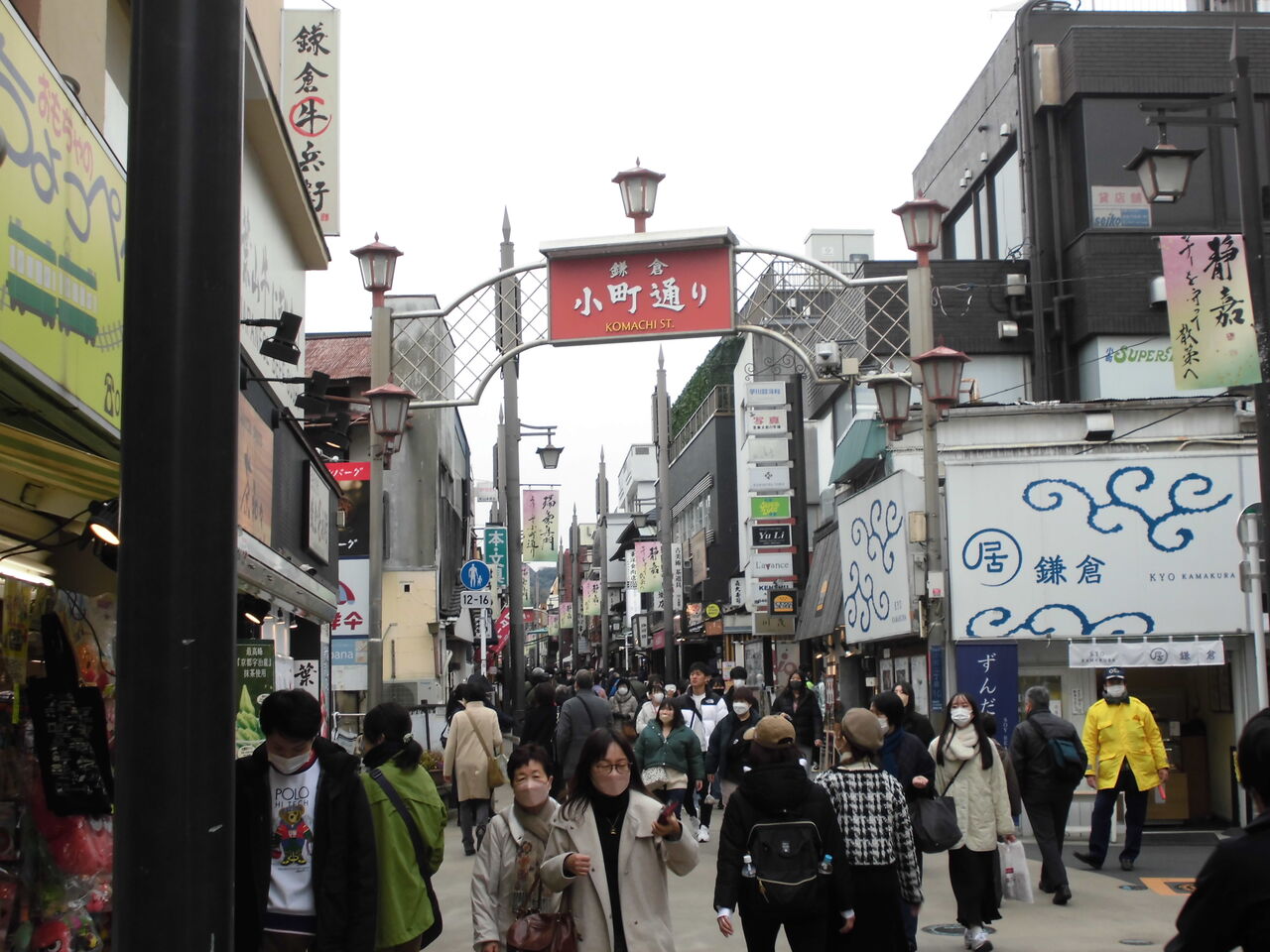 目的地へ行くのに小町通りを通ったんですけど、平日なのに凄く混んでいました。修学旅行生らしき人達もいて、活気が戻ってきたんだなぁと思いました。小さな通りにいろんなお店のいろんな行列が出来ていて歩くのが大変でした^^;