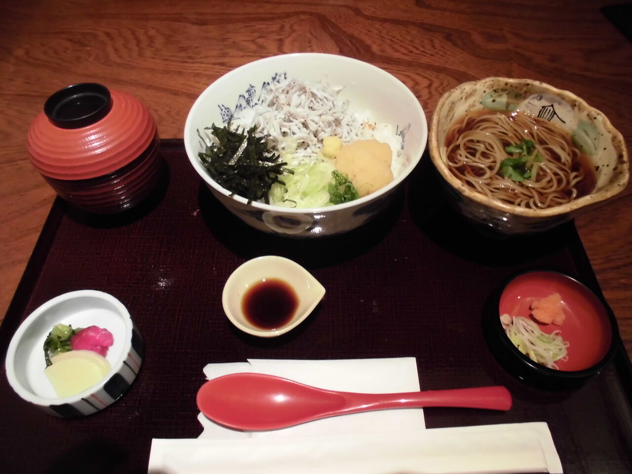 窯上げしらす丼です。鎌倉へ行ったら食べようと思っていました^^セットで小さなお蕎麦もいただけました。どちらも美味しかったー!大満足です。