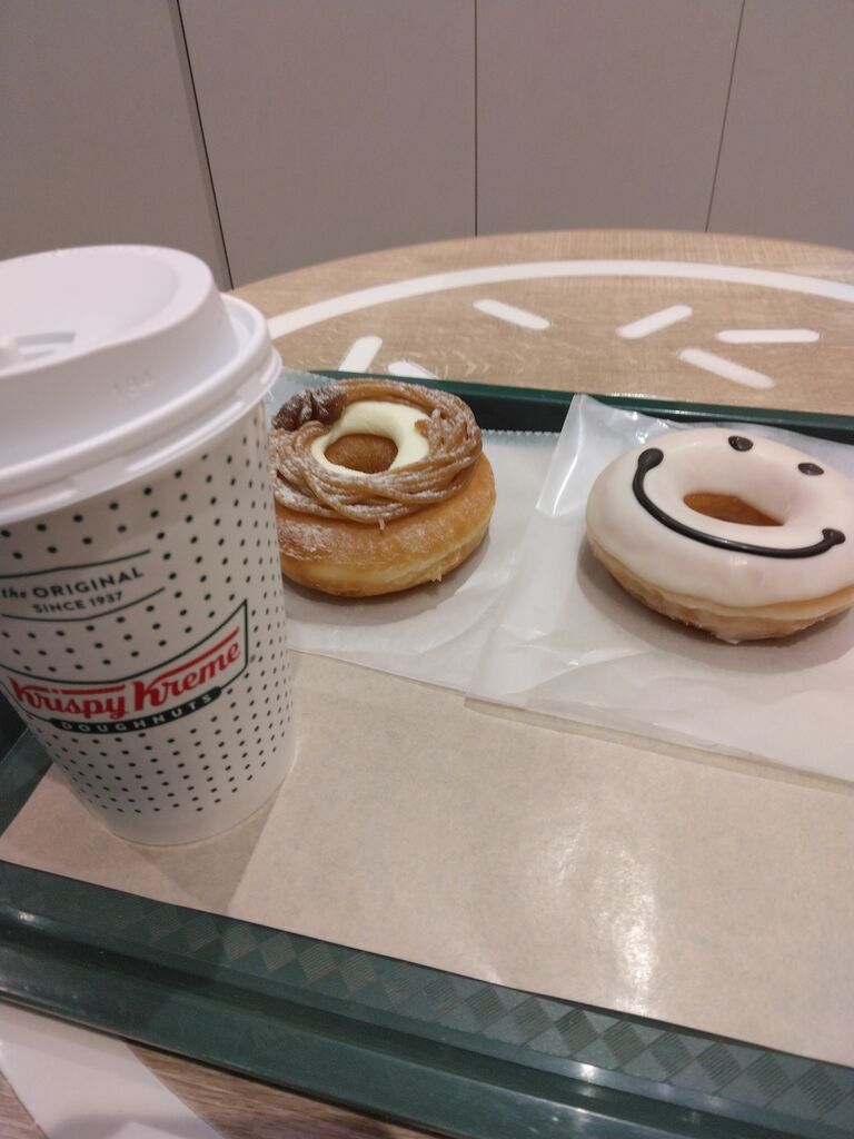 頼んだのは期間限定のモンブランクリームとスマイルクリームです^^どちらも美味しかったー!ドーナッツがふわふわでした!ドリンクはアイスコーヒーです^^ドーナツはすごくたくさん種類があるんですね。また行ってみたいです。